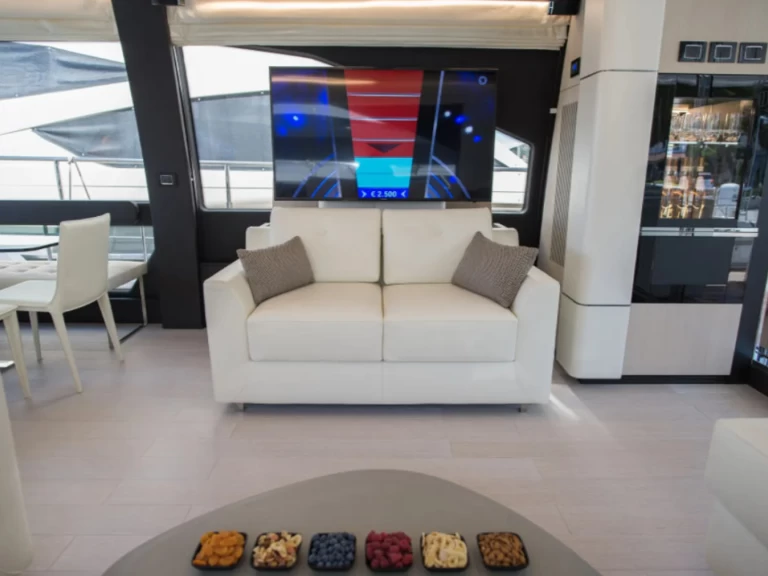 Embark on board the FLY, an amazing Azimut 72 to discover the region of Split. This luxury yacht was built in 2018 to ensure complete comfort and performance at sea. The boat has 4 fully-equipped cabins and a capacity of 8 people. With an overall length of 23 meters, it will be your best ally to spend an exceptional vacation on the water in the surroundings of Split This Azimut 72 is equipped with 4 heads with a shower. It has the following equipment: Auto-pilot, Bow thruster, TV, Water maker. If you have any questions about the boat or the charter conditions, you can send a message via the Samboat platform. A SamBoat advisor will answer your questions and offer you our best rates.